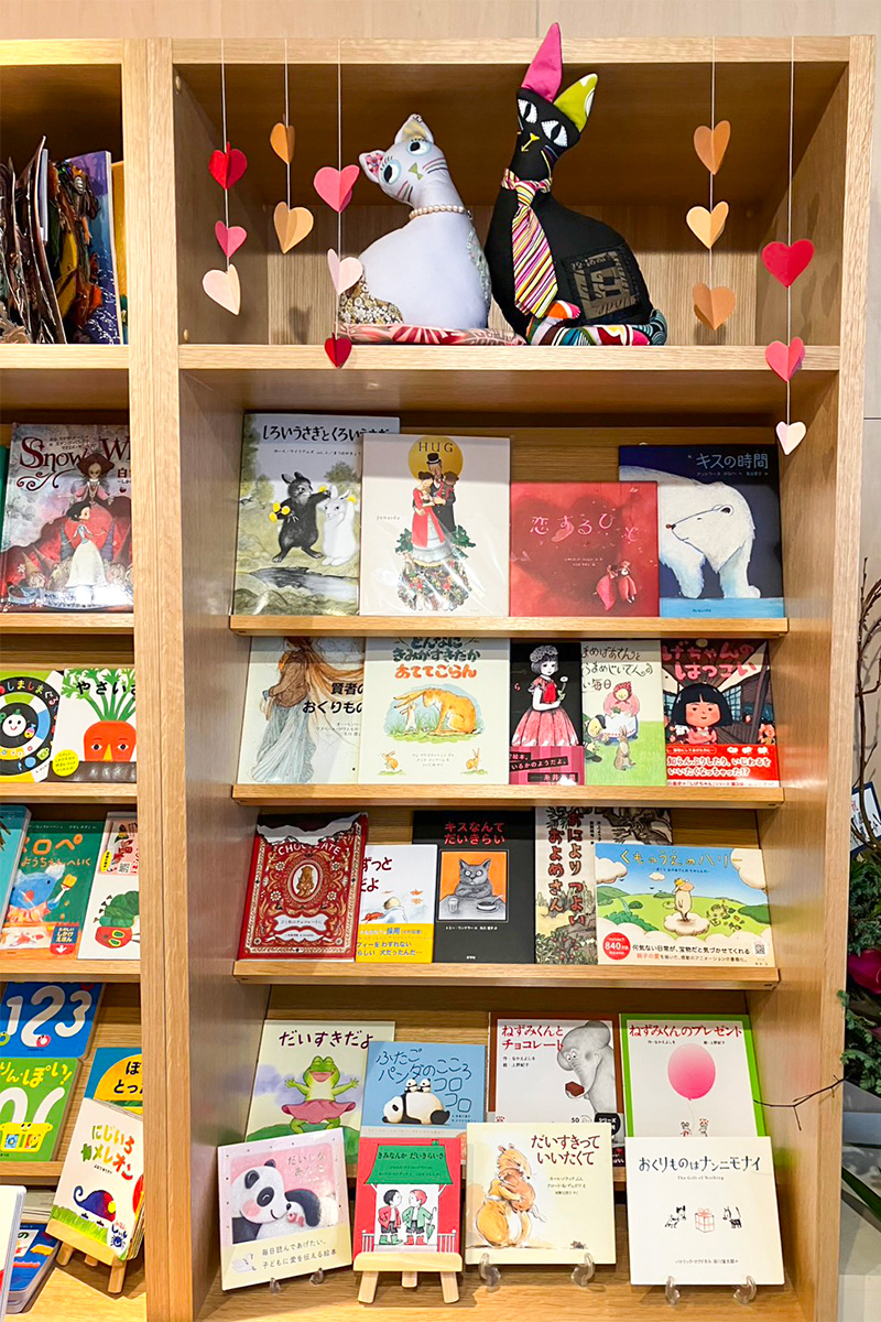 バレンタインデーに向けて、「だいすきだよ」がテーマの絵本を集めたコーナーを作りました。